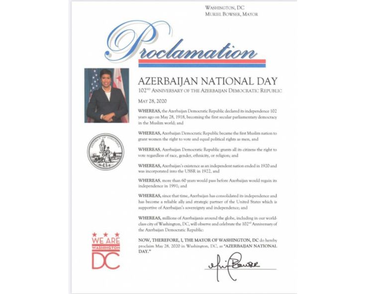 Qeyd edək ki, Vaşinqton meri tərəfindən hər il 28 may tarixində Bəyannamə imzalanması artıq ənənəyə çevrilib.