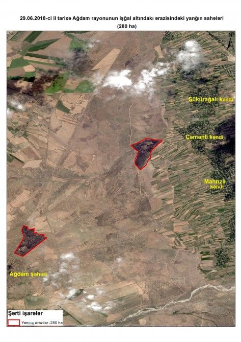 İyunun 29-da Ağdam rayonunun işğal altından olan yaşayış məntəqələri üzrə ümumilikdə 280 hektar ərazinin yandığı aşkar edilib.