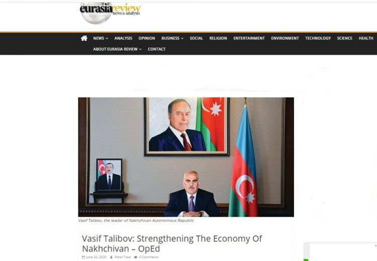 Müəllif iyunun 22-də həmin məqaləni “Cənab Vasif Talıbov: Naxçıvanın iqtisadiyyatını gücləndirir” sərlövhəsi ilə Amerika Birləşmiş Ştatlarının “Eurasiareview” ingilis dilli saytında da yerləşdirib. Peter Tase məqalədə Naxçıvan Muxtar Respublikasının iqtisadi və turizm potensialı, həmçinin ərazidə koronavirus pandemiyasının qarşısının alınması sahəsində görülən işlər barədə oxuculara ətraflı məlumat verir.
