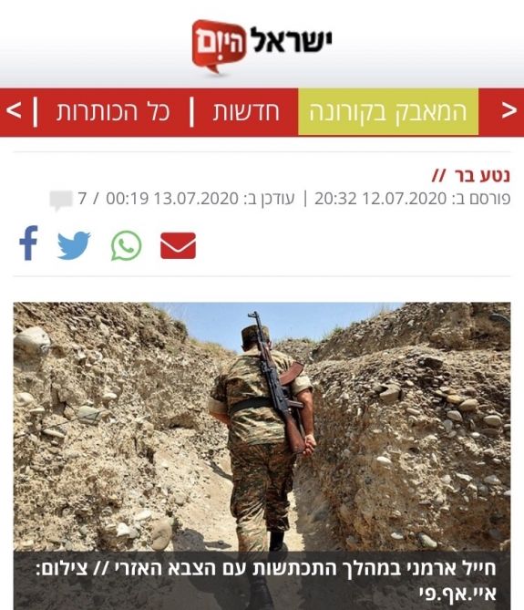 Məqalə müəllifi bildirir ki, bu hərbi toqquşma Dağlıq Qarabağ ətrafında silahlı münaqişə vəziyyətində olan Azərbaycan ilə Ermənistan arasında münaqişə zonasından uzaqda baş verib. Neta Bar vurğulayır: “Azərbaycan Müdafiə Nazirliyinin məlumatına görə hərbi insident Ermənistan silahlı qüvvələri bölmələrinin hərbi əməliyyatları nəticəsində baş verib. Onlar Azərbaycan-Ermənistan dövlət sərhədinin Tovuz istiqamətində Azərbaycan ordusunun mövqelərini ələ keçirmək məqsədilə artilleriyadan istifadə etməklə hücuma keçməyə cəhd göstəriblər. Məlumatda bildirilir ki, atışma erməni piyada qoşunlarının Azərbaycan ordusunun mövqelərini tutmaq cəhdi ilə müşayiət olunub, lakin bu cəhd baş tutmayıb”.