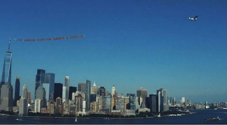 ABŞ-ın Nyu-York şəhərində “Ermənistanın işğalçılıq siyasətini dayandır!” (“Stop Armenian Occupation”), “Qarabağ Azərbaycandır!” (“Karabakh is Azerbaijan!) şüarlarını daşıyan təyyarə havaya qaldırılıb.