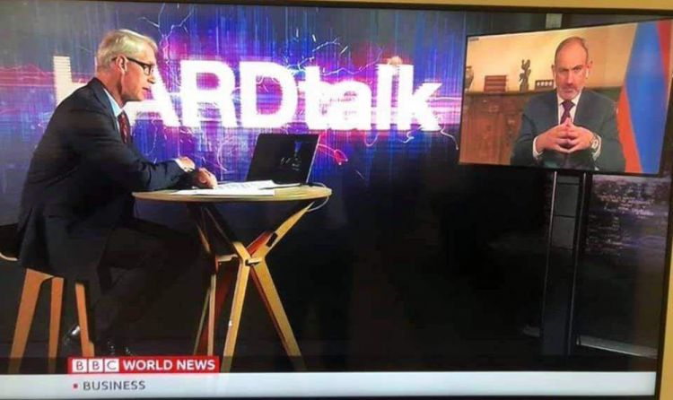 Stiven Sakur növbəti sualında “Sizin idarəetmənizdə bir çox insanların gözlədiyi kimi hər hansı bir dəyişiklik olmadı. Siz Azərbaycan ilə sülhə nail olmaq üçün hakimiyyətə gəldiniz. Lakin ötən ay biz yeni toqquşma, yeni münaqişə gördük” fikri ilə Paşinyanın da sələfləri kimi, işğalçı və faşist mahiyyətini bir daha ifşa etdi. Paşinyan özünün qeyri-səlis ingiliscəsi ilə bütün dünyaya məlum olan bu faktdan yayınmağa çalışdı. Aparıcı isə dərhal müdaxilə edərək bildirdi: “Cənab baş nazir, lakin fəaliyyət sözlərdən daha güclü səslənir. Biz iyulun ortalarında gördük ki, Ermənistan silahlı qüvvələri sərhəd boyunca kəndlərə atəş açır. Azərbaycana istinadla biz gördük ki, 76 yaşlı mülki vətəndaş qətlə yetirildi. Əlbəttə ki, bundan sonra daha da uzanan hərbi toqquşmaya gətirib çıxaran cavab atəşi açıldı. Bir daha qeyd etmək istəyirəm ki, sizin siyasətiniz sülhün bərqərar olması üçün hesablanmayıb”. Paşinyan yenə də bu suala cavab tapmır və kəkələyərək nəsə demək istəyir. Lakin hər zaman olduğu kimi, heç bir fakta, sənədə əsaslanmayan, siyasi reallığa uyğun olmayan fikirlər səsləndirməklə nə qədər savadsız və məntiqsiz olduğunu bütün dünyaya nümayiş etdirir.