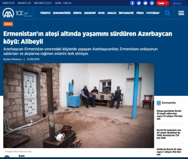 Anadolu Agentliyi Ermənistanın atəşi altında yaşayışın davam etdiyi Azərbaycan kəndi Əlibəylidən reportaj hazırlayıb