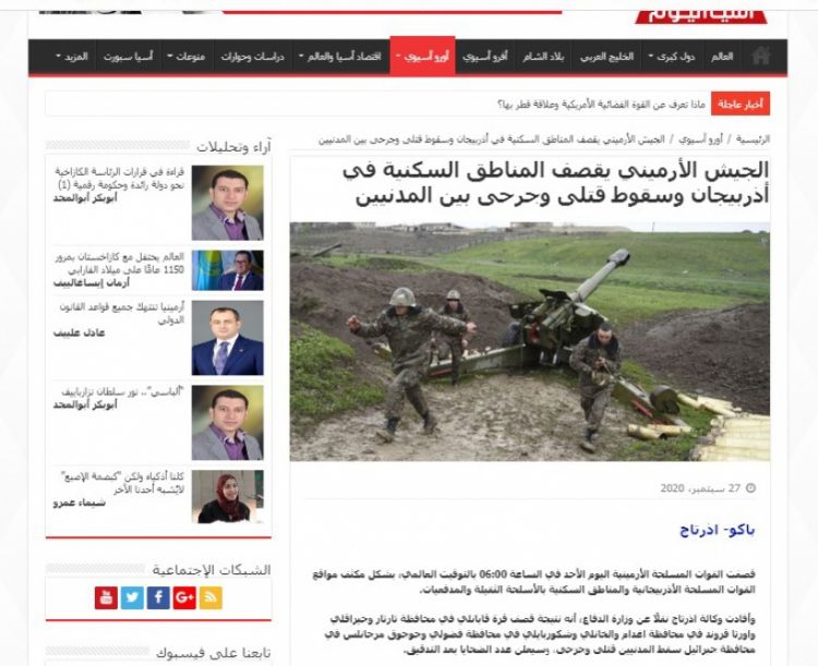 Ermənistanın Azərbaycana qarşı növbəti hərbi təxribatı Yaxın Şərq və Şimali Afrika ölkələrində ərəbdilli mətbuatın diqqət mərkəzindədir.