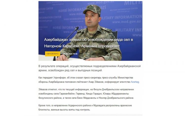 Ukraynanın nüfuzlu saytları Azərbaycan Ordusunun uğurlu əks-həmlə əməliyyatlarına dair məqalələr dərc edib