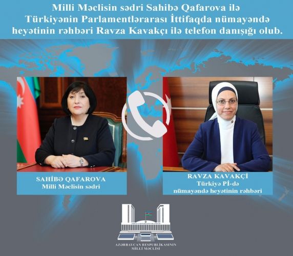 Milli Məclisin Sədri Sahibə Qafarova ilə Türkiyənin Parlamentlərarası İttifaqda nümayəndə heyətinin rəhbəri Ravza Kavakçı arasında telefon danışığı olub.
