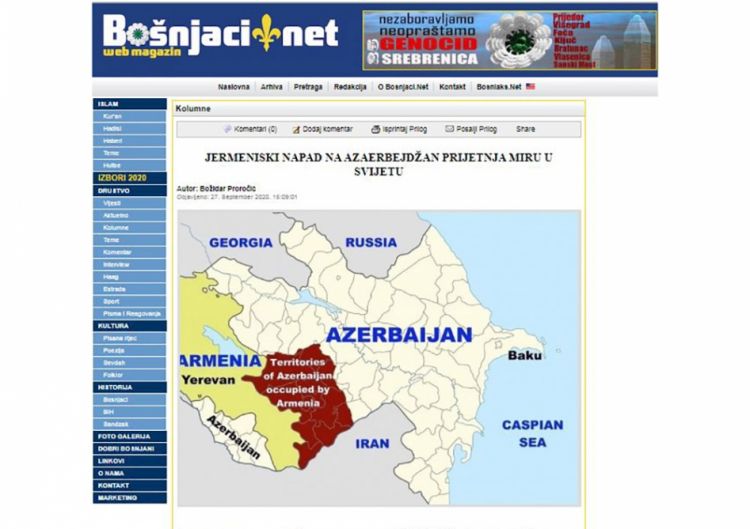 Monteneqronun nüfuzlu “Bosnjaci.net” və “www.crnogorskiportal.me” xəbər portallarında “Ermənistanın Azərbaycana hücumu regiondakı və dünyadakı sülhə təhlükədir” başlıqlı məqalə dərc edilib.