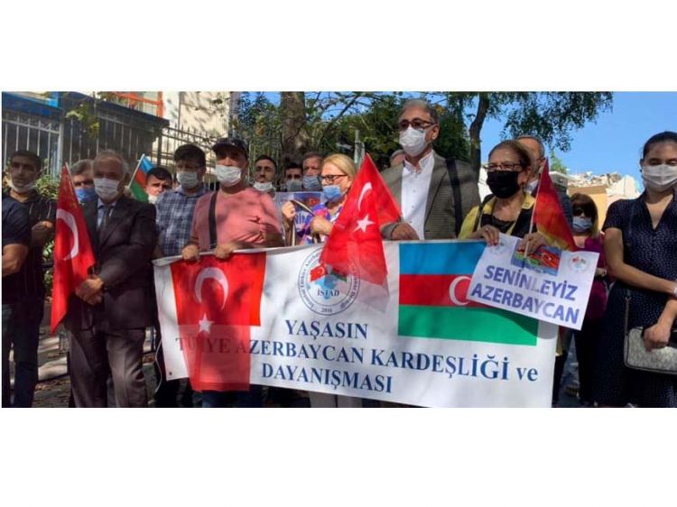 Ölkəmizin İstanbuldakı Baş Konsulluğunun qarşısına toplaşan aksiya iştirakçıları Azərbaycan və Türkiyə bayraqlarını dalğalanlandırıblar, "Səninləyik Azərbaycan!", "Qarabağa Azadlıq!", "Yaşasın Türkiyə-Azərbaycan qardaşlığı" və sair şüarları səsləndiriblər.