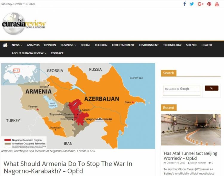 İndoneziyanın nüfuzlu “eurasiareview.com” saytında tanınmış jurnalist Veeramalla Anjaiahın “Ermənistan Dağlıq Qarabağdakı müharibənin dayandırılması üçün nə etməlidir?” başlıqlı analitik məqaləsi dərc olunub.