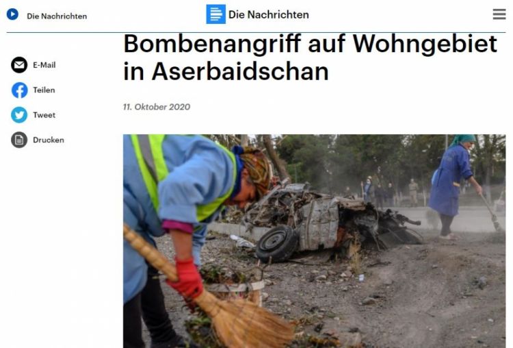 Materialda Ermənistan silahlı qüvvələrinin atəşkəs saatlarında Gəncə şəhərinə qarşı hücumundan danışılır. Nəşr Azərbaycanın Xarici İşlər naziri Ceyhun Bayramovun öz “Twitter” səhifəsində yuxuda olan Gəncə şəhərinin hücuma məruz qalması barədə dünyaya verdiyi xəbərə istinad edir. Erməni silahlı qüvvələri tərəfindən yaşayış ərazisinə gecə hücumu nəticəsində 9 nəfər həlak olub və 30-dan artıq insan yaralanıb. Nəşrdə xatırladılır ki, həmin axşam münaqişə tərəfləri Rusiyanın vasitəçiliyi ilə atəşkəs barədə razılığa gəlmişdilər.