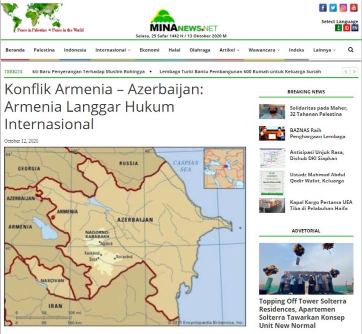 NUHÇIXAN İnformasiya Agentliyi xəbər verir ki, bu fikirlər İndoneziyanın Miraj İnformasiya Agentliyinin oktyabrın 13-də yaydığı məqalədə yer alıb. “Ermənistan-Azərbaycan münaqişəsi: Ermənistan beynəlxalq hüququ pozur” sərlövhəli məqalənin müəllifi Siyasət, Biznes və Beynəlxalq Araşdırmalar Mərkəzinin icraçı direktoru Yasmi Adriansyahdır.