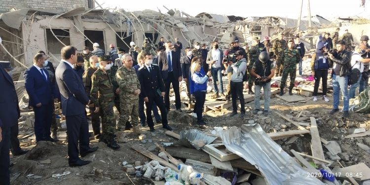 Azərbaycan Respublikasının Baş Prokuroru Kamran Əliyev və Fövqəladə Hallar naziri, general-polkovnik Kəmaləddin Heydərov Ermənistan silahlı qüvvələrinin oktyabrın 17-də gecə saat 1 radələrində Gəncə şəhərinə yenidən raket atması nəticəsində dağılmış əraziyə gəliblər.