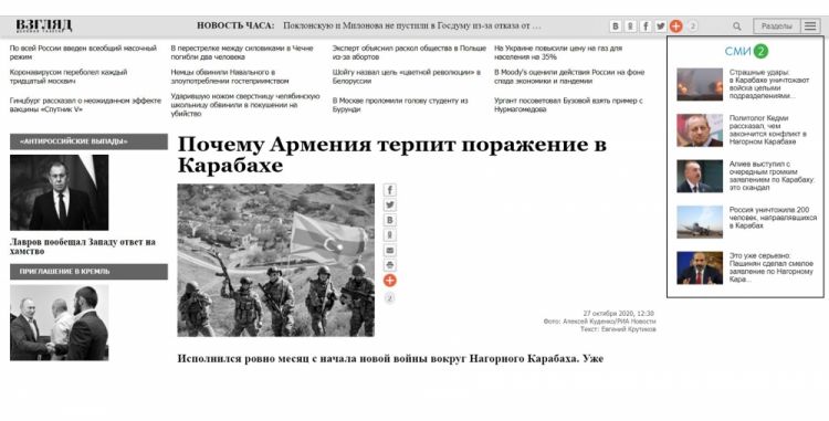 NUHÇIXAN İnformasiya Agentliyi xəbər verir ki, Yevgeni Krutikovun müəllifi olduğu materialda artıq Ermənistan ordusunun geri çəkildiyi vurğulanır. Qeyd olunur ki, Azərbaycan ordusu Dağlıq Qarabağda müdafiə xəttini yararaq irəliləyib və hazırkı vəziyyət Ermənistan qoşunlarının strateji məğlubiyyətindən danışmağa imkan verir.
