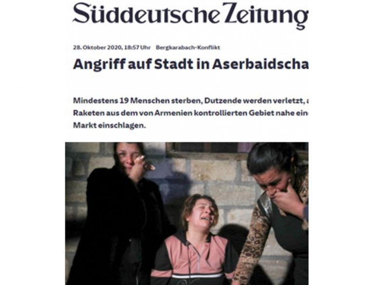 “Sueddeutsche Zeitung”, həmçinin Bərdədə mülki əhalinin, qadın və uşaqların qətlə yetirilməsini qınayıb. Qeyd edilib ki, Ermənistan işğal etdiyi Dağlıq Qarabağda yaradılan qondarma qurumu heç özü də tanımır. Dağlıq Qarabağ və ətrafındakı 7 rayon beynəlxalq səviyyədə Azərbaycan ərazisi kimi tanınır.