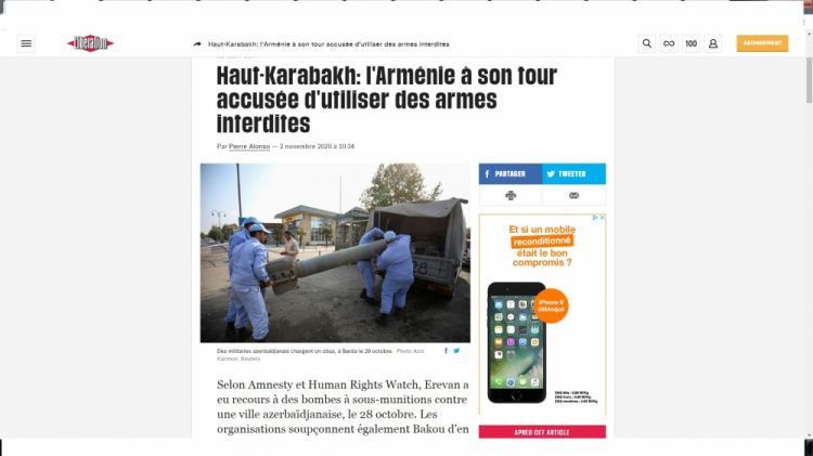 Fransanın “Liberation” qəzetində “Dağlıq Qarabağ: Ermənistan qadağan olunmuş silahlardan istifadə etməkdə ittiham olunur” adlı məqalə dərc edilib.