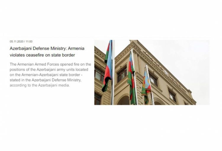 Azərbaycan, gürcü, rus və ingilis dillərində yayılan məlumatlarda Ermənistan tərəfindən atəşkəs rejiminin pozulması və Azərbaycan rayonlarının atəşə tutulması barədə xəbər verilir.