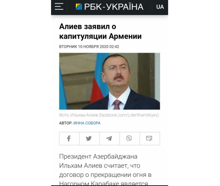 Ukrayna mətbuatı: Dağlıq Qarabağ münaqişəsi zonasında atəşin dayandırılması Ermənistanın kapitulyasiyasıdır