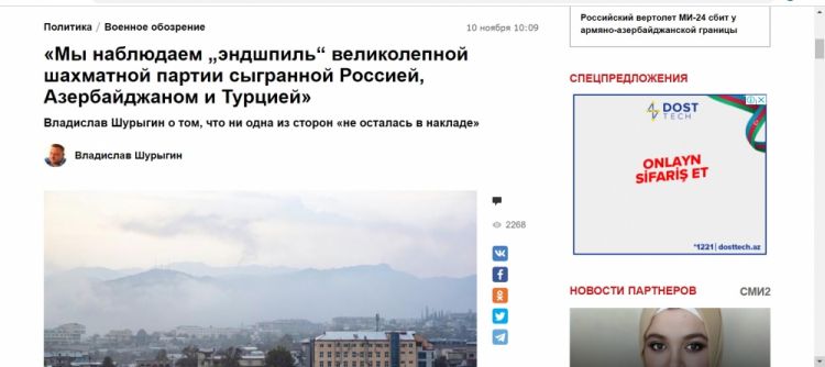 NUHÇIXAN İnformasiya Agentliyi xəbər verir ki, hərbi publisist Vladislav Şurıgin bu barədə “Svobodnaya pressa” internet nəşrində yazıb.