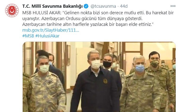 NUHÇIXAN İnformasiya Agentliyi xəbər verir ki, bunu Türkiyənin milli müdafiə naziri Hulusi Akar bildirib.