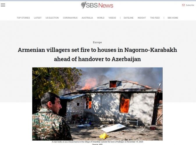 NUHÇIXAN İnformasiya Agentliyi xəbər verir ki, bu barədə Avstraliyanın nüfuzlu “SBS news” portalı məlumat yayıb. Bildirilir ki, ermənilər 30 ilə yaxın bir müddətdə işğal altında saxladıqları ərazilərdə yerləşən evlərə od vururlar. Burada yaşayan ermənilərə ərazini tərk etmələri üçün noyabrın 15-dək vaxt verilib.