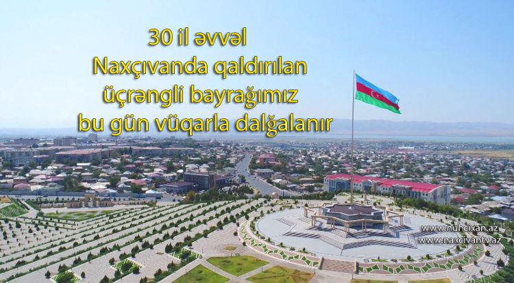 Azərbaycan Xalq Cümhuriyyətinin atributu olan üçrəngli, ay-ulduzlu bayrağın yenidən Azərbaycanın müstəqillik rəmzinə çevrilməsi ulu öndər Heydər Əliyevin tarixi xidmətləri ilə bağlıdır. Xalqımızın ümummilli lideri Heydər Əliyevin 1990-cı ilin iyulunda Naxçıvana qayıdışı və bu qədim Azərbaycan diyarında milli dövlətçiliyimizin bərpası istiqamətində atdığı tarixi addımlar nəinki Naxçıvanı, bütövlükdə Azərbaycanı məhv olmaq təhlükəsindən xilas etdi. Ölkədə cərəyan edən mürəkkəb və ziddiyyətli bir dövrdə Naxçıvana rəhbərlik edən dahi lider Heydər Əliyevin milli dövlət quruculuğu sahəsində qəbul etdiyi mühüm qərarları Naxçıvanda milli dirçəlişin əsasını qoymaqla Azərbaycanın müstəqil, demokratik və dünyəvi dövlət kimi gələcək fəaliyyətinin siyasi və ideoloji əsaslarını müəyyən etdi. Bu dövrdə xalqda milli özünüdərki gücləndirən, milli dövlət rəmzlərinə hörmət təlqin edən genişmiqyaslı addımlar atıldı. 1990-cı il noyabrın 17-də Naxçıvan Ali Sovetinin sessiyasında ümummilli lider Heydər Əliyevin təşəbbüsü ilə müstəqil Azərbaycan dövlətçiliyinin bərpası istiqamətində bir çox məsələlər müzakirə olundu, “Naxçıvan Muxtar Sovet Sosialist Respublikasının adının dəyişdirilməsi haqqında”, “Naxçıvan Muxtar Respublikası Ali Dövlət hakimiyyəti orqanı haqqında”, “Naxçıvan Muxtar Respublikasının Dövlət rəmzləri haqqında” tarixi qərarlar qəbul edildi. “Naxçıvan Muxtar Respublikasının Dövlət rəmzləri haqqında” Qərara əsasən, müstəqilliyimizin əsas atributlarından olan Azərbaycan Xalq Cümhuriyyətinin üçrəngli bayrağı Naxçıvan Muxtar Respublikasının Dövlət Bayrağı kimi qəbul olundu. Bununla əlaqədar ümummilli lider Heydər Əliyevin öz əli ilə yazdığı Ali Məclisin Qərarında deyilirdi: