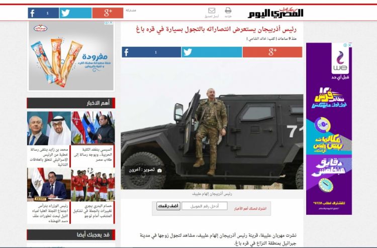 Misirin “Almasryalyoum” qəzetinin saytında “Azərbaycan Prezidenti işğaldan azad edilmiş Cəbrayıl rayonunda müharibənin yekunundan bəhs edib” sərlövhəli material yerləşdirilib.