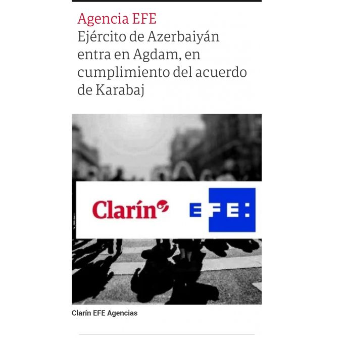 Argentinanın “Clarin” gündəlik qəzetinin saytında “Azərbaycan Ordusu Qarabağ üzrə razılaşma çərçivəsində Ağdama daxil olub” sərlövhəli material dərc olunub.