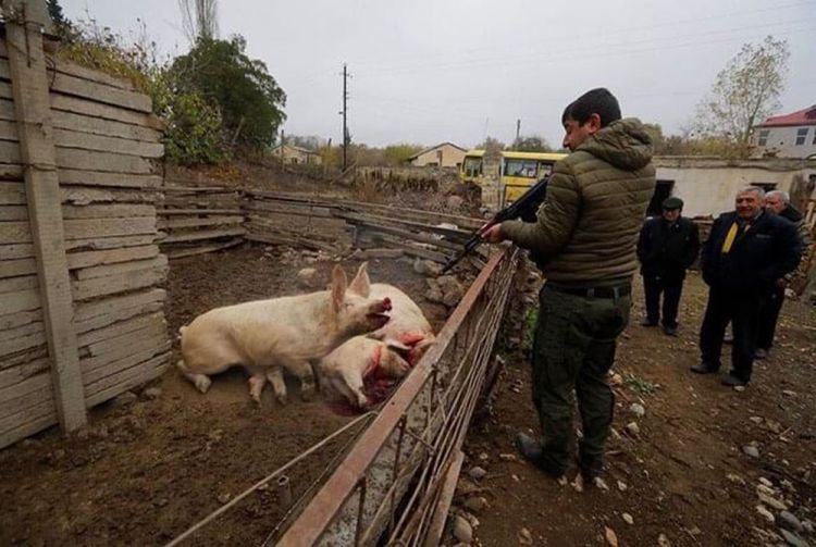 İşğalçı ermənilər apara bilmədikləri heyvanları belə öldürürlər.