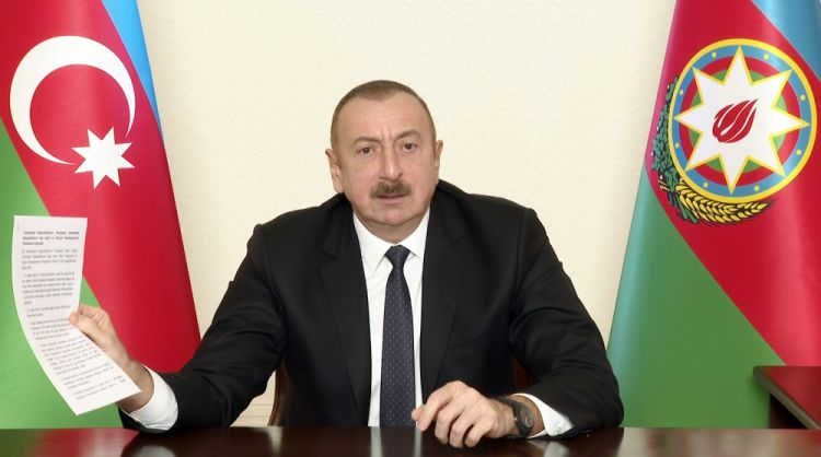 Noyabrın 10-da imzalanmış Bəyanat icra edilir. Mən imzalanma mərasimindən sonra bu bəyanatı olduğu kimi Azərbaycan xalqının diqqətinə çatdırdım və bir daha göstərdim ki, bizim bütün işlərimiz şəffafdır. Mən xalqın gözü qarşısında bunu imzalamışam, böyük qürur hissi ilə imzalamışam, qalib kimi imzalamışam. Bu Bəyanatın bütün mətnini Azərbaycan xalqının diqqətinə çatdırdım. Bu gün isə artıq münaqişə arxada qalandan sonra bu Bəyanatın icrasını şərh etmək istərdim.