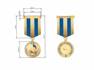 Medal paltara bərkidilmək üçün elementi olan, 37 mm x 50 mm ölçülü beşbucaqlı xara lentə iki halqa və ilgək vasitəsilə birləşdirilir. Xara lentin mərkəzində 10 mm enində qızılı rəngli şaquli zolaq, qızılı rəngli zolaqdan sol və sağ kənarlara doğru ardıcıl olaraq 8 mm enində bir göy rəngli və 5.5 mm enində bir qızılı rəngli şaquli zolaqlar təsvir olunmuşdur. Medala paltarın yaxasına bərkidilmək üçün elementi olan, eyni xara lentdən üz çəkilmiş 37 mm x 10 mm ölçülü qəlib əlavə olunur.