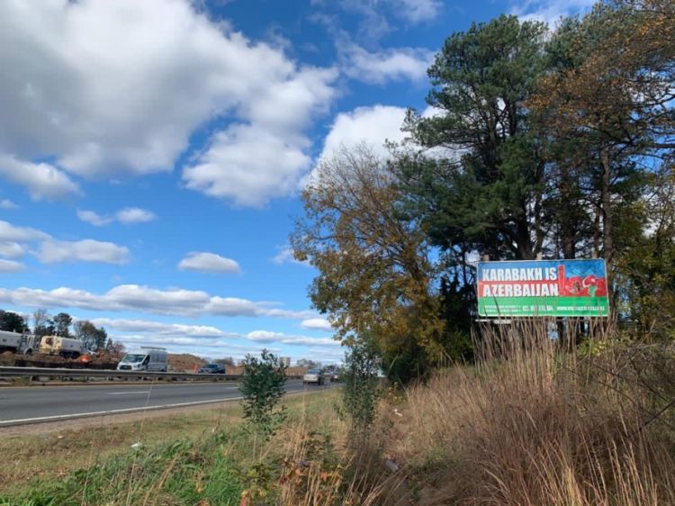 ABŞ-ın Şimali Karolina ştatının Roli şəhərində “Qarabağ Azərbaycandır!” şüarı yazılmış lövhə quraşdırılıb.