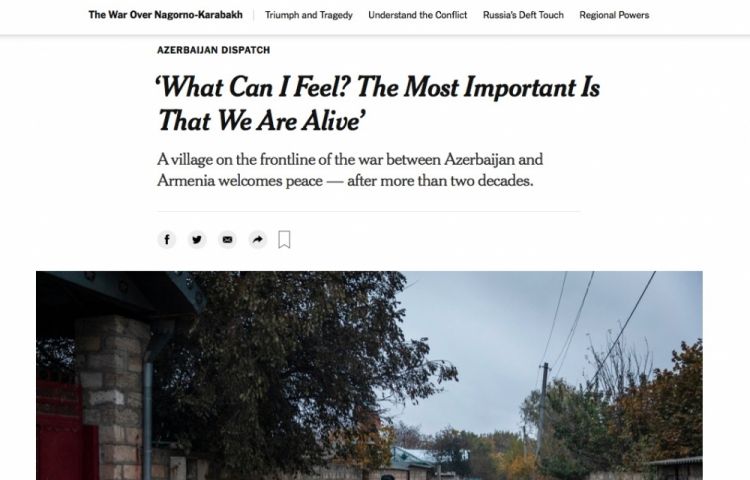 “The New York Times” qəzetində nəşrin İstanbul bürosunun rəhbəri Karlotta Qollun Azərbaycanın Ağdam rayonunun Çıraqlı kəndində müharibədən sonrakı vəziyyətə həsr olunan “Mən nə hiss edirəm? Ən əsası odur ki, biz salamatıq” adlı məqaləsi dərc edilib.