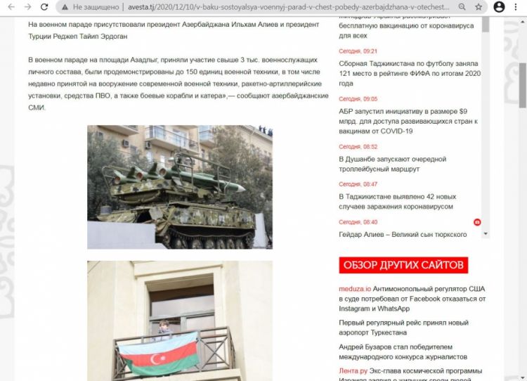 Tacikistanın “avesta.tj” portalının səhifəsində Bakının Azadlıq meydanında keçirilən Zəfər paradı haqqında məqalə yerləşdirilib.