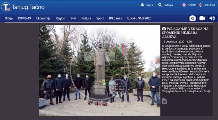 Serbiyanın “Tanjug” informasiya agentliyi Azərbaycan xalqının ümummilli lideri Heydər Əliyevin vəfatının 17-ci ildönümü ilə əlaqədar xatirəsinin yad edilməsi ilə bağlı material dərc edib.