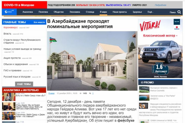 Azərbaycanın Moldovadakı səfiri Qüdsi Osmanovun Azərbaycan xalqının ümummilli lideri Heydər Əliyevin anım gününə həsr edilən məqaləsi Moldovanın nüfuzlu “Tribuna”, “Noi”, “IPN” və “Deschide” xəbər agentlikləri tərəfindən dərc edilib.