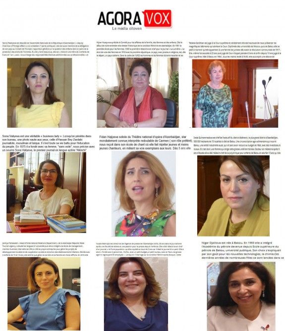 Fransanın “AgoraVox” portalında “Azərbaycan qadınının obrazı” sərlövhəli məqalə dərc olunub. Məqalədə fransız jurnalistin ölkəmizdə müxtəlif sahələri təmsil edən doqquz qadınla müsahibələri yer alıb.