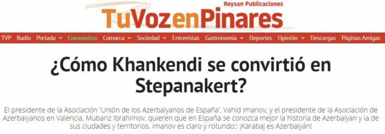 İspaniyanın www.tuvozenpinares.com xəbər portalında “Xankəndi necə Stepanakert oldu?” sərlövhəli məqalə dərc olunub.
