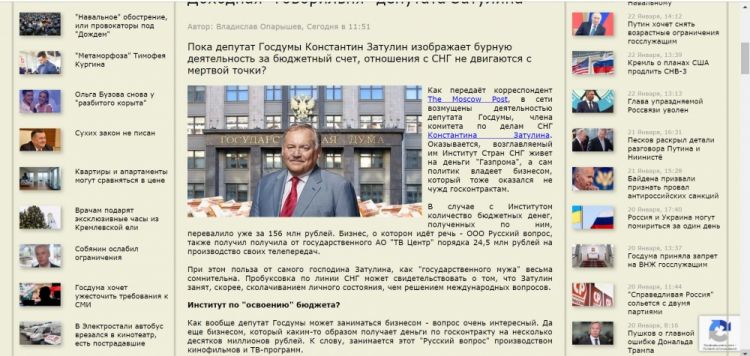 NUHÇIXAN İnformasiya Agentliyi xəbər verir ki, Sankt-Peterburqda çıxan “The Moscow Post” qəzetində Rusiyadakı erməni diasporunun havadarı, deputat Konstantin Zatulin barədə məqalə dərc olunub.