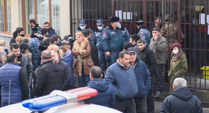 Qarabağdakı 44 günlük müharibənin onlarla iştirakçısı Ermənistan Müdafiə Nazirliyinin binası qarşısında etiraz aksiyası keçirir.