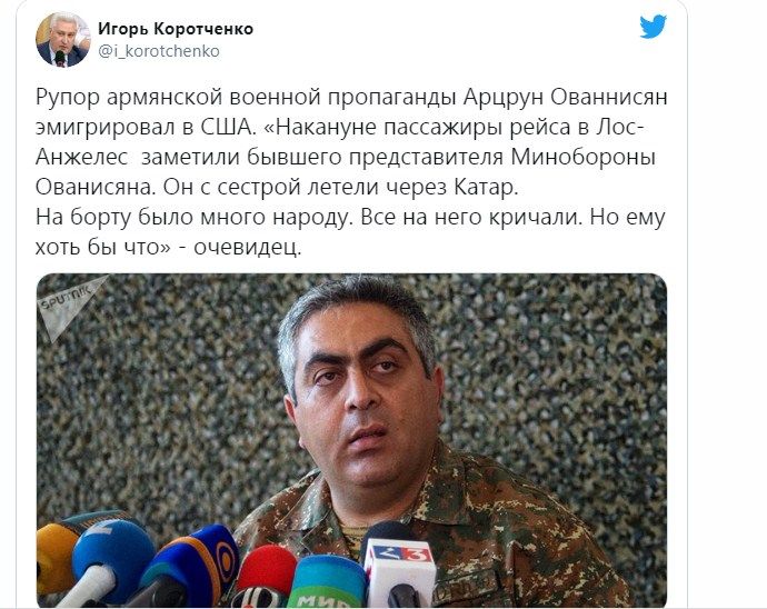 "Bir gün əvvəl (fevralın 21-də) Los-Anceles reysinin sərnişinləri (Ermənistan-red) Müdafiə Nazirliyinin keçmiş nümayəndəsi Ovannisyanı gördülər. O, bacısı ilə Qətər reysilə uçurdu.