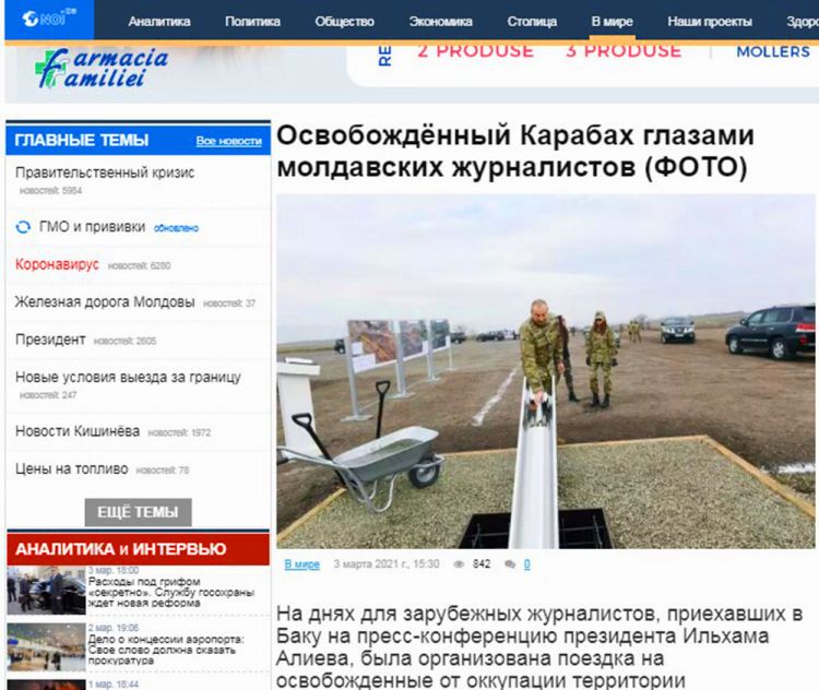 Moldovanın nüfuzlu “noi.md” xəbər portalında “Azad olunan Qarabağ moldovalı jurnalistlərin gözü ilə” sərlövhəli məqalə dərc edilib.
