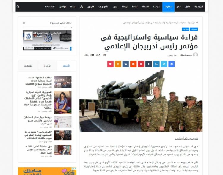 Misirin “Aldiplomasy” informasiya portalında Azərbaycan xalqının Vətən müharibəsində qazandığı Qələbədən bəhs edən geniş məqalə yerləşdirilib.