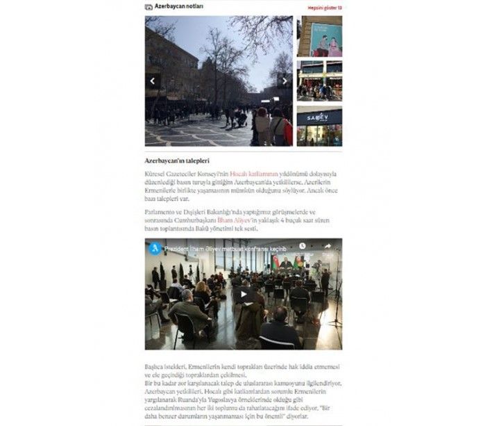 Beynəlxalq Qəzetçilər Şurasının xətti ilə Xocalı soyqırımının ildönümü ərəfəsində Azərbaycanda olan publisist Eren Umurbilir Prezident İlham Əliyevin fevralın 26-da xarici və yerli mətbuat nümayəndələri üçün keçirdiyi mətbuat konfransında iştirak etdiyini, dövlət rəsmiləri ilə bir sıra görüşlər keçirdiyini ifadə edərək diqqətə çatdırır ki, Azərbaycanın mövqeyi dəyişməzdir: Xocalı soyqırımını törədənlər beynəlxalq hüquq qarşısında cavab versinlər. Bir daha yer üzündə Xocalı soyqırımı kimi cinayətlər baş verməsin.