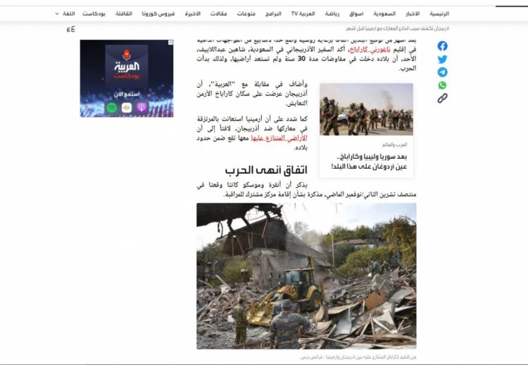 “Əl Ərəbiyə” telekanalı ötən il sentyabrın 27-də Azərbaycanın Ermənistan tərəfindən işğal olunmuş ərazilərində müharibənin başlanması səbəbləri barədə reportaj yayıb.