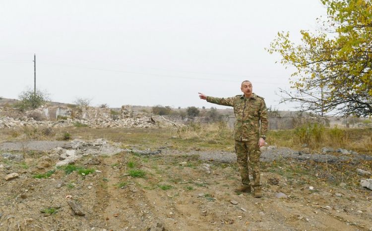 "Bura Füzuli şəhəridir. Amma şəhərdən əsər-əlamət qalmayıb. Şəhər yoxdur, dağıdılıb. Ermənilər dağıdıblar. İşğal dövründə gəlib bizim binalarımızı söküb, binaların daşlarını, damlarını aparıblar, oğru kimi, talançı kimi. Bunlar, Füzuli şəhərinin qalıqlarıdır. Bu gün də Ermənistanı müdafiə edən xarici dairələr gözlərini açıb baxsınlar onların vəhşiliyinə. Onlar kimi müdafiə edirlər?! Otuz il torpaqlarımızı işğal altında saxlayan mənfur düşmən bir daşı-daş üstündə qoymayıb. Görün, yollar nə gündədir. Otuz il ərzində bu yollar asfalt görməyib. Onların bütün təbliğatı yalandır, bütün tarixi saxtadır. Özlərini dövlət adlandırırdılar, dırnaqarası “Artsax dövləti” – cəhənnəmə getdi. “Dövlət” idisə, bəs, niyə daş-daş üstə qoyulmayıb? Çünki bilirdilər ki, bu torpaq onların deyil. Bu torpaq azərbaycanlıların torpağıdır. Bura işğaldan azad edilmiş Xocavənd rayonudur", - dövlət başçısı bildirib.