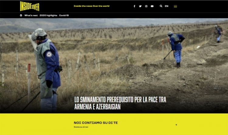 İtaliyanın nüfuzlu “İl Giornale” qəzetinin xüsusi buraxılışı olan “İnsideover” analitik portalında italyan jurnalist Emanuel Pietrobonun müəllifi olduğu “Ərazilərin minalardan təmizlənməsi Ermənistanla Azərbaycan arasında sülh üçün ilkin şərtdir” sərlövhəli məqalə dərc edilib.