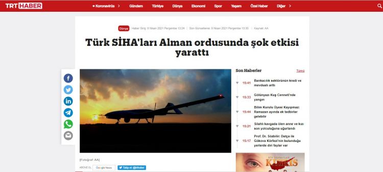 Yazıda bildirilib ki, İsrail və Türkiyə tərəfindən istehsal olunan PUA-lar Qarabağ və ətraf rayonlarda Ermənistan Silahlı Qüvvələrinə aid 190-dan artıq tankı və zirehli avtomobili məhv edib: “Erməni hərbçiləri bu hücumlar qarşısında müdafiəsiz olduqları üçün məyus vəziyyətə düşdülər. Bununla bağlı xəbərlər Almaniya ordusunda şoka səbəb olub”.