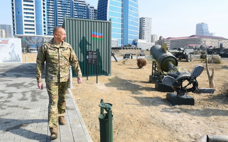 Hərbi Qənimətlər Parkına gələn hər bir insan Ordumuzun, Silahlı Qüvvələrimizin gücünü görəcək, iradəmizi görəcək. Görəcək ki, bu qələbəni əldə etmək nə qədər çətin idi. Çünki düşmən 30 il ərzində işğal edilmiş torpaqlarda möhkəmlənirdi, istehkamlar qururdu, səngərlər, sığınacaqlar qazırdı. Bütün bunlara baxmayaraq, Azərbaycan hərbçiləri qəhrəmanlıq, peşəkarlıq, Vətən sevgisi göstərərək, bütün bu maneələri dəf edərək düşməni məğlub etdilər”, - Prezident bildirib.