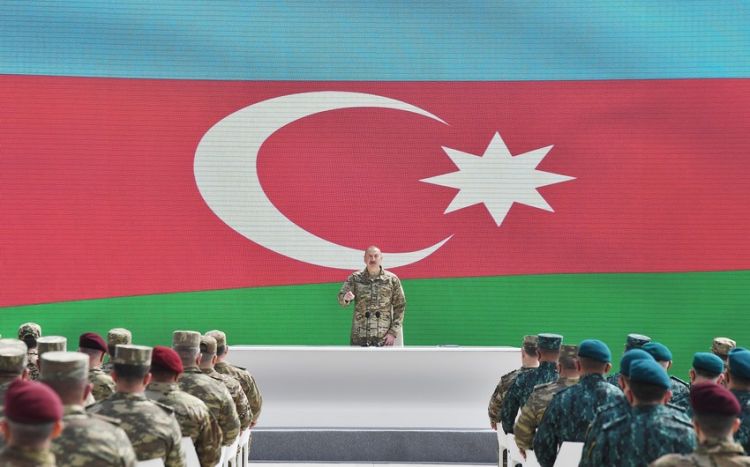 "Bu, yenilik idi, inkişaf idi, bu, bizim gücümüzün təzahürü idi. İkinci Qarabağ müharibəsi də bizim gücümüzü göstərdi, müasirliyi göstərdi. Çünki biz XXI əsrin müharibəsini aparmışıq və bu gün artıq sirr deyil ki, dünyanın aparıcı hərbi məktəblərində İkinci Qarabağ müharibəsindəki əməliyyatlarımız, bizim uğurlarımız, Qələbəmiz öyrənilir. Dünya mətbuatında artıq dəfələrlə məlumat verilmişdir ki, dünyanın aparıcı ölkələri, o cümlədən Amerika Birləşmiş Ştatları, Böyük Britaniya, Almaniya və inkişaf etmiş digər ölkələr İkinci Qarabağ müharibəsinin bütün aspektlərini öyrənirlər. Öz ordularını müasir standartlara, müasir tələblərə uyğunlaşdırmaq istəyirlər. Biz nəinki XXI əsrin müharibəsini nümayiş etdirmişik, biz dünyada heç vaxt olmayan Qələbəni qazanmışıq. Çətin relyef şəraitində düşmənin bir neçə istehkamının qarşısında biz peşəkarlıq, məharət, güc, hərbi elm qoyduq və istədiyimizə nail olduq, düşməni torpaqlarımızdan qovduq", - dövlət başçısı bildirib.