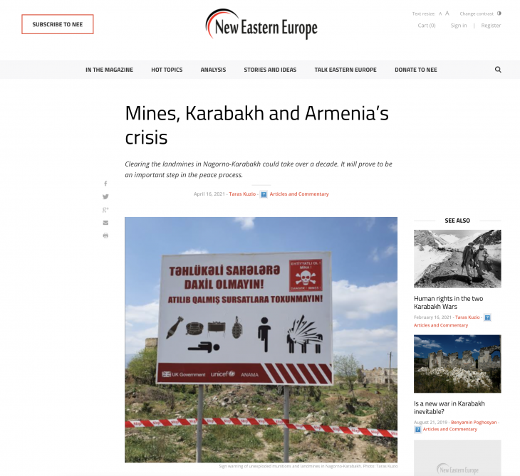 “neweasterneurope.eu” portalında “Minalar, Qarabağ və Ermənistanda böhran” adlı məqalə dərc olunub.